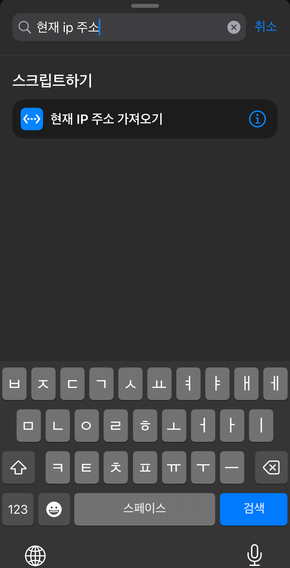 검색에서 "현재 IP 주소 가져오기"를 검색하면 해당 동작만 필터링되서 보인다. 항목을 선택하자.