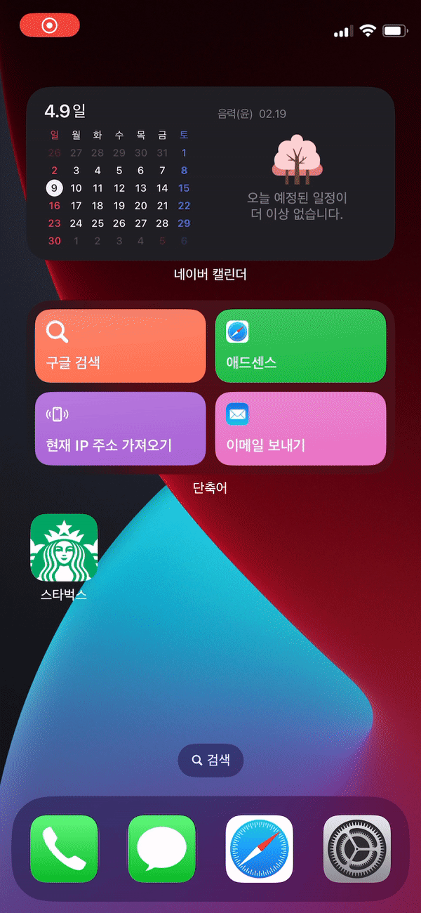 하지만 필요한 단축어 여러개를 폴더 하나에 넣고 이 폴더를 위젯으로 만들면 보기에도 이쁘고 관리도 더 편하다.