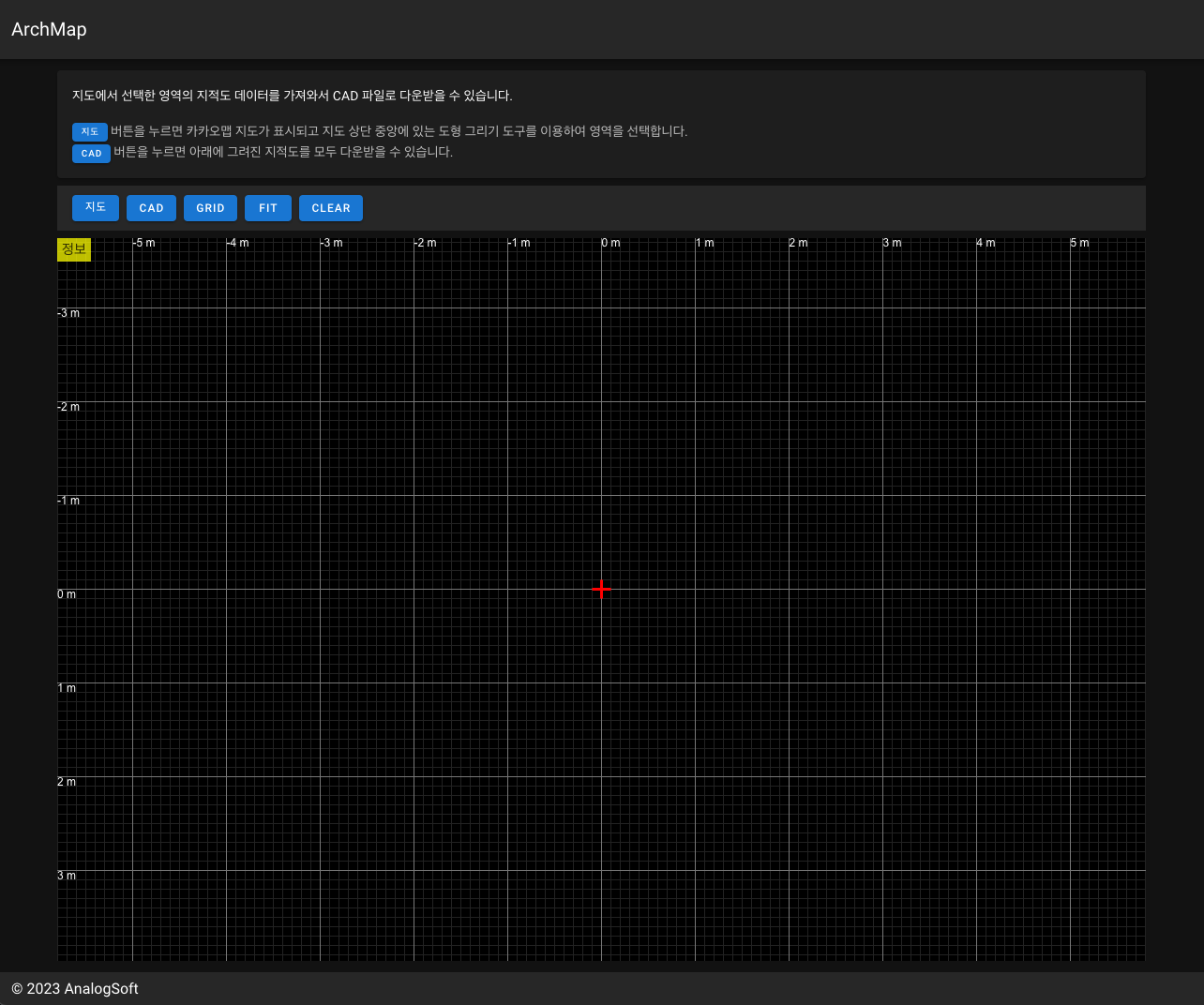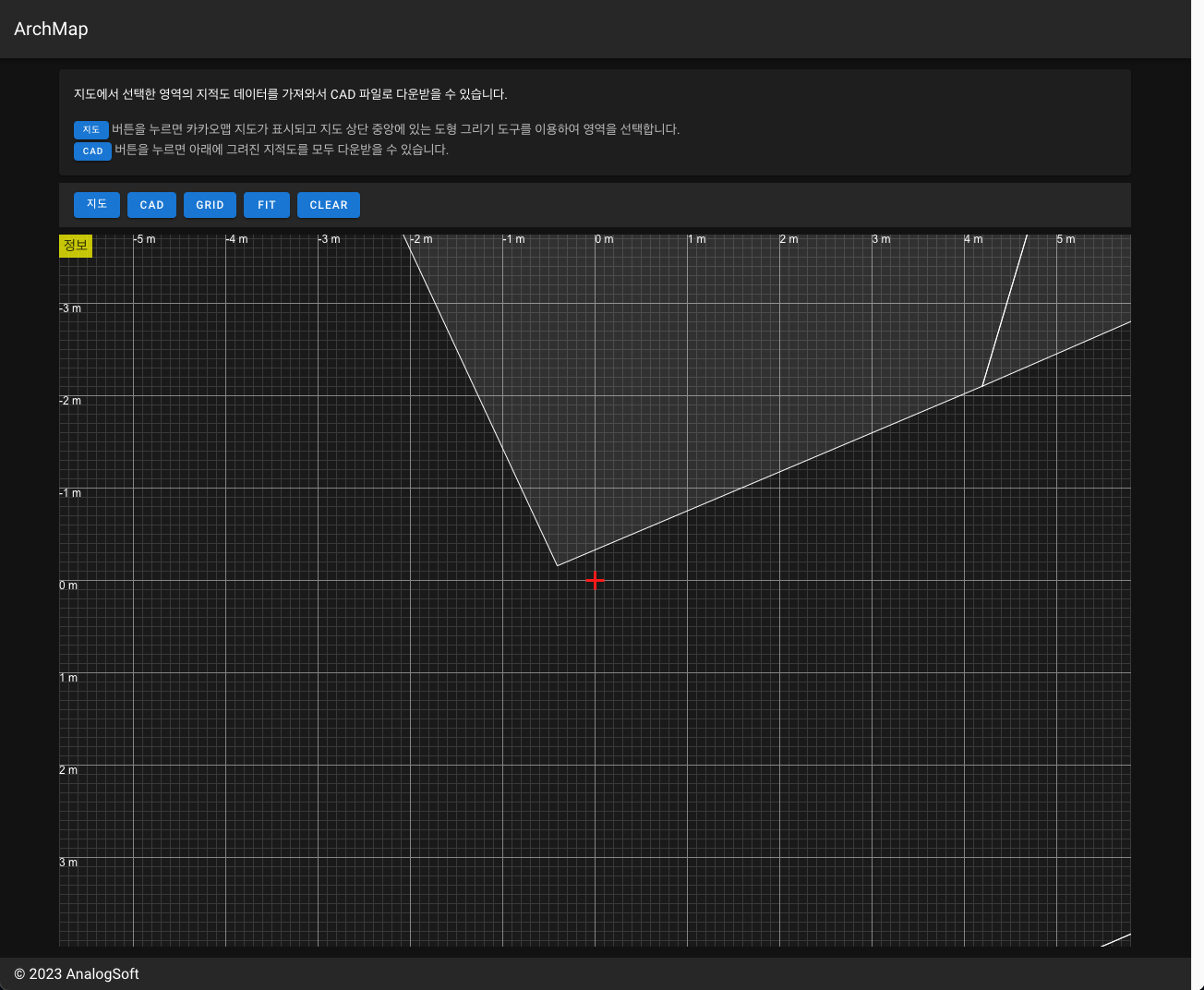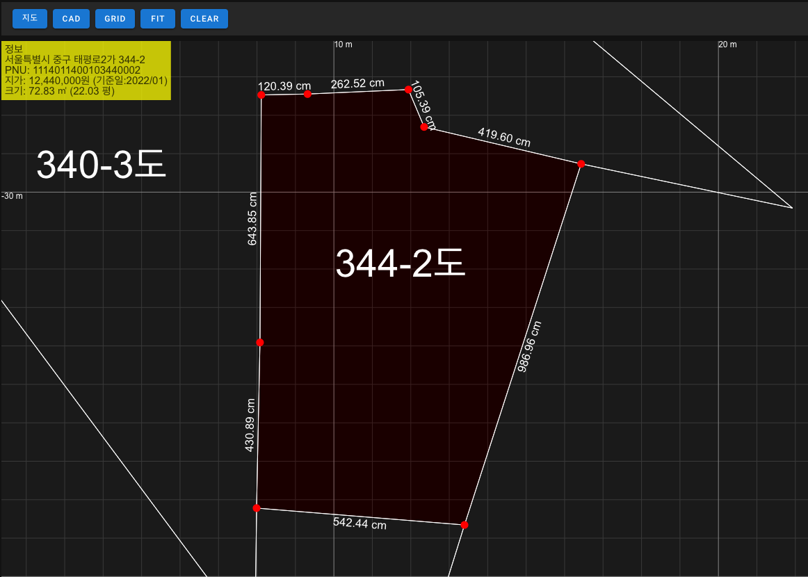 | FIT 버튼 | 영역 자동으로 맞추기 (지적도가 그려져 있을 경우 화면에 모두 보이게 만들기) |