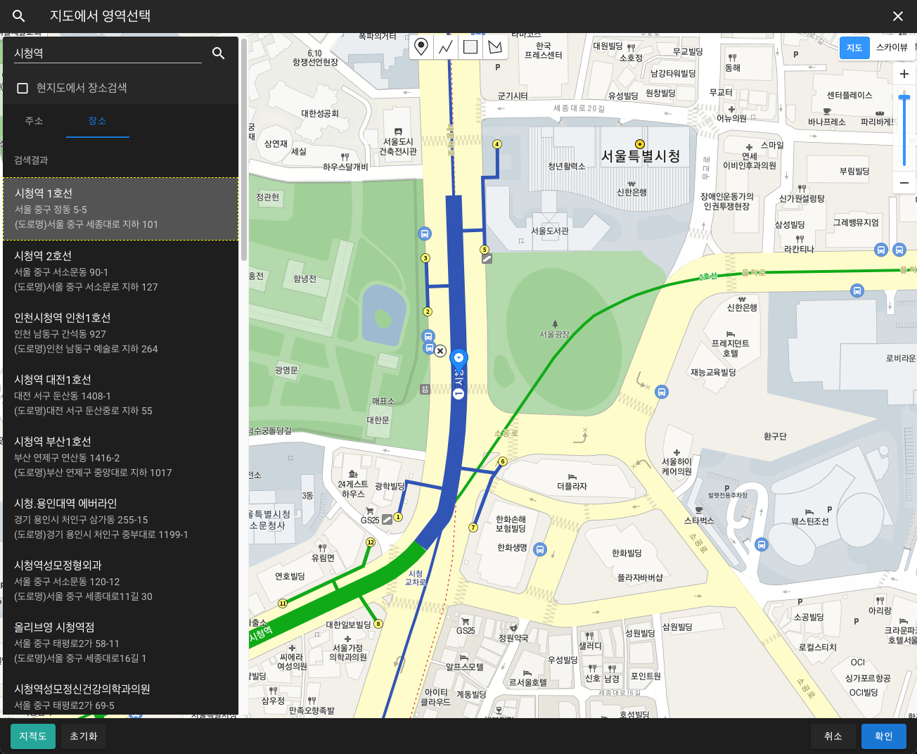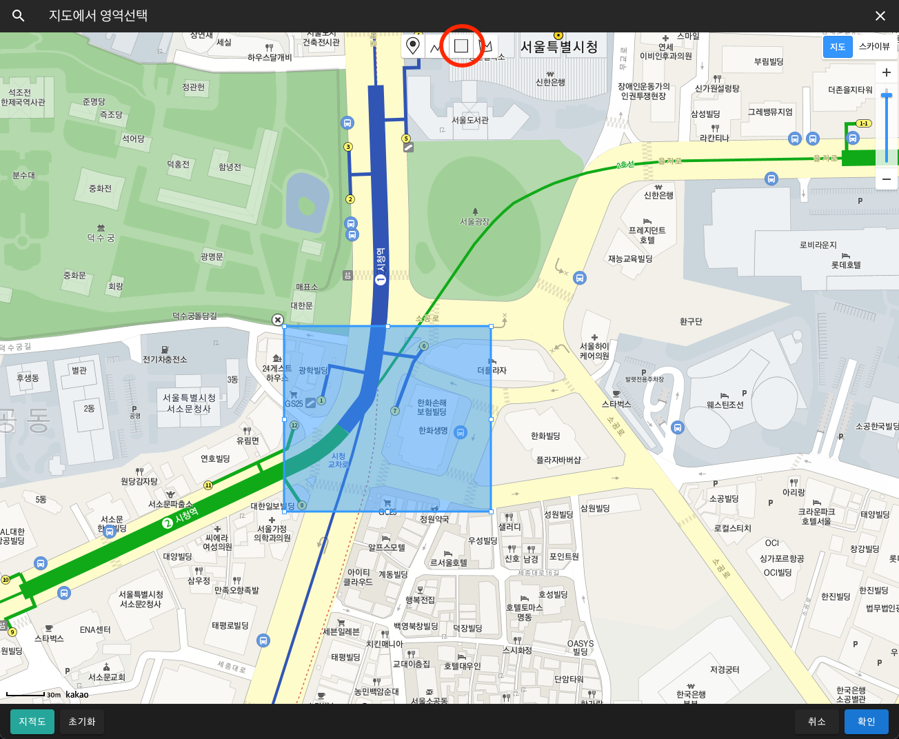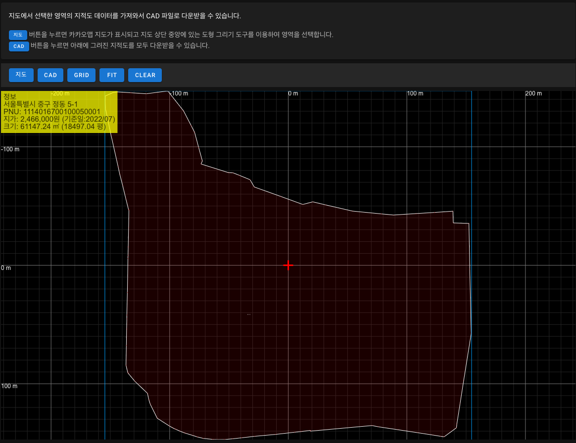 | 확인 버튼 | 선택한 영역을 사용하여 지적도 데이터 가져오기 |