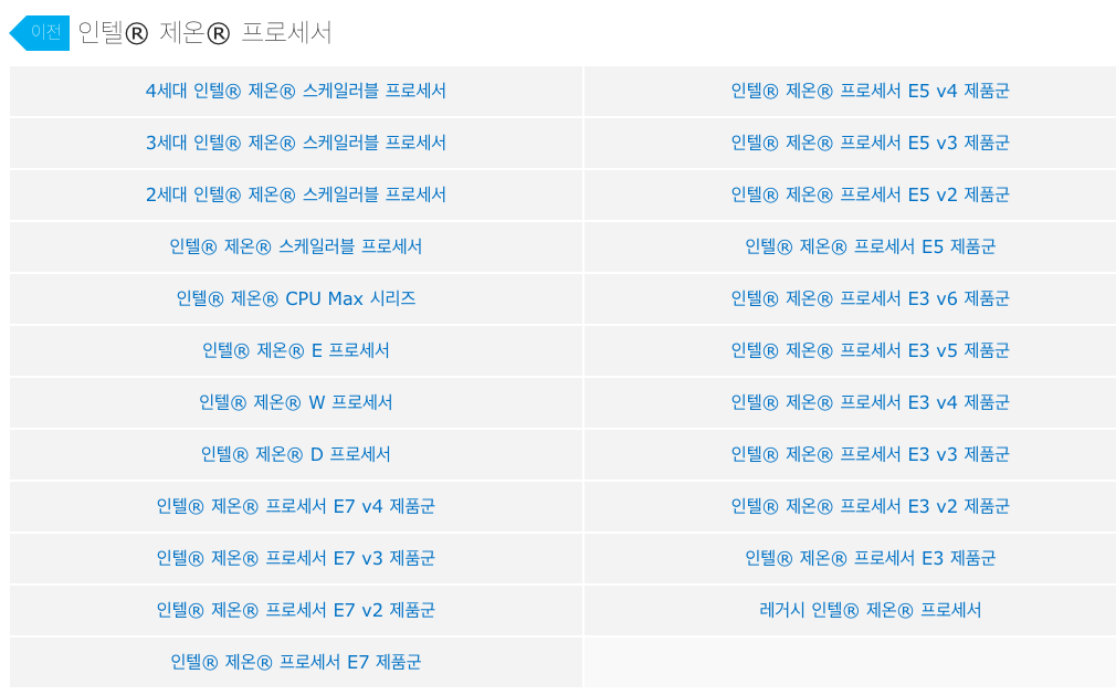 | 인텔 | 제온 스케일러블 1, 2세대 (2017, 2019년) |