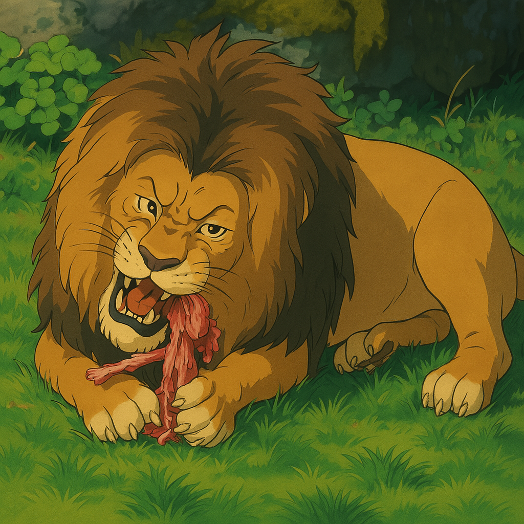 이번에는 지브리와 어울리지 않는 사자가 고기를 물어뜯고 있는 모습을 해보자.